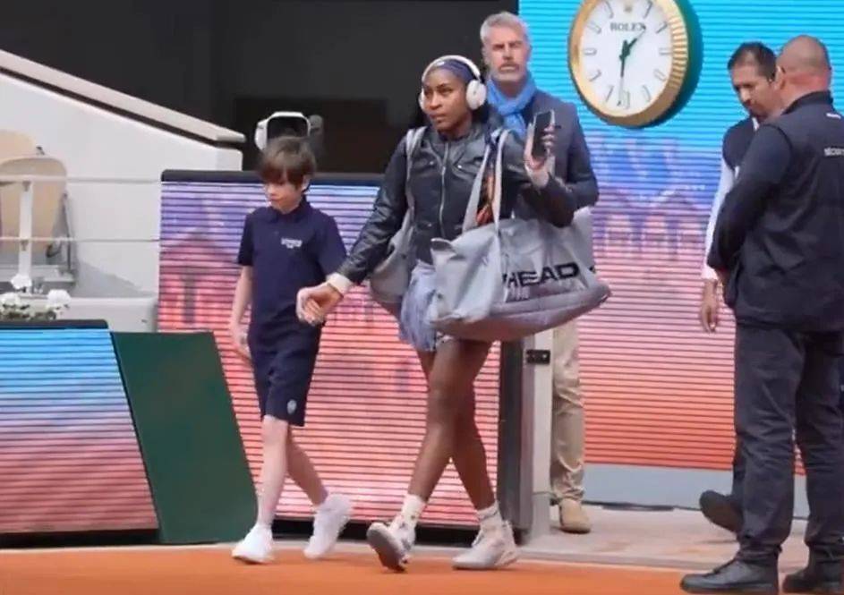 2号种子高芙上演“法网小品”,黑色皮衣帅气登场,背包一开傻眼:球拍没拿!